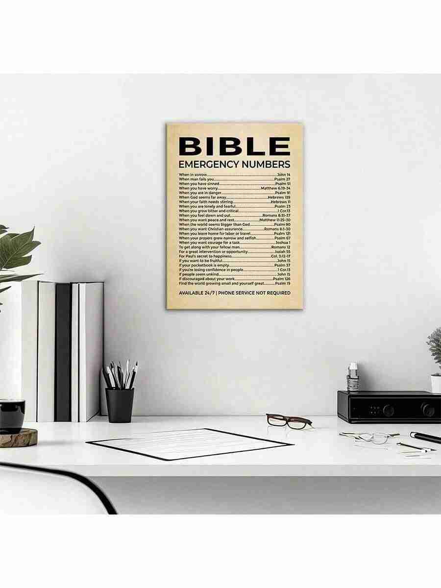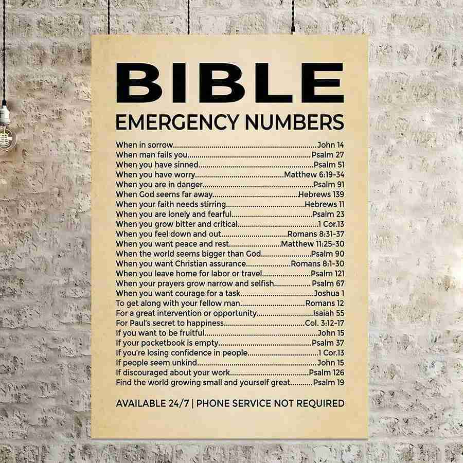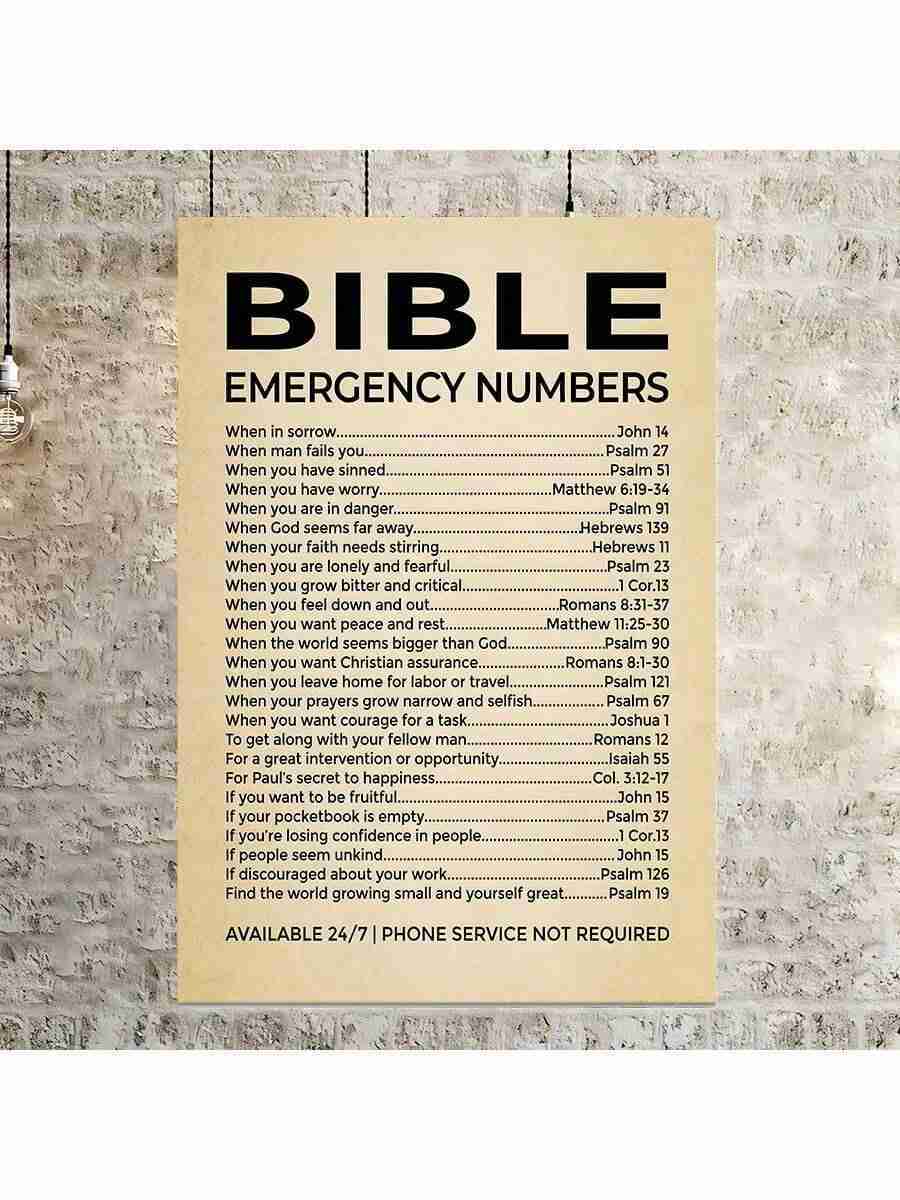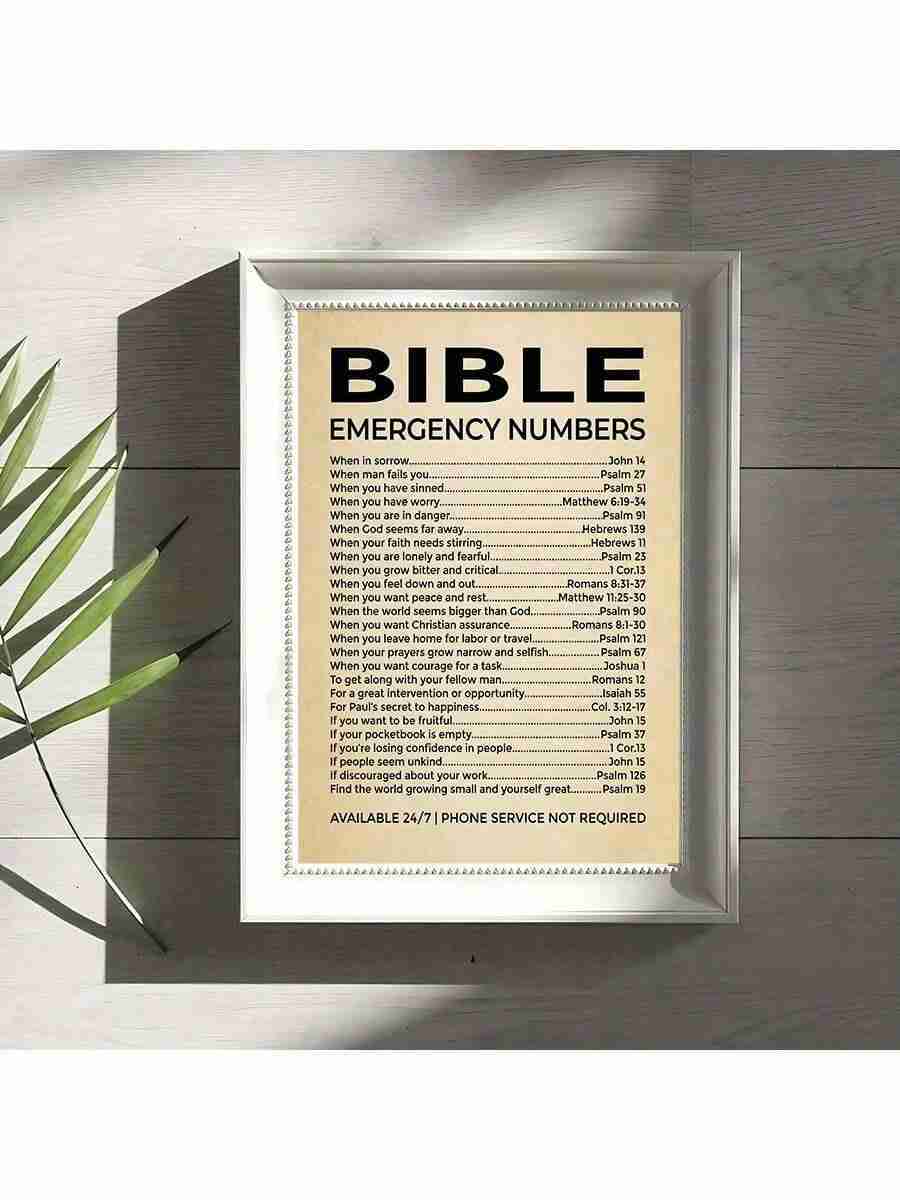 Enhance your space with this unique canvas wall decor print featuring essential Bible emergency numbers, designed to inspire and uplift. Perfect for living rooms or offices, this vintage-style Christian gift adds a thoughtful touch to your décor. Made from 100% polyester non-woven fabric in an elegant gold color, this unframed art piece is lightweight and easy to display. It serves as a constant reminder of faith and reliance on scripture, making it an ideal gift for friends, family, or anyone looking to incorporate more inspiration into their daily life.